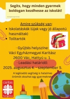 Iskolakezdéshez gyűjt támogatást a Váci Egyházmegyei Karitász