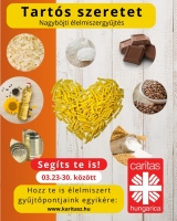 A Magyar Katolikus Püspöki Konferencia által kezdeményezett és a Katolikus Karitász által lebonyolított Tartós szeretet elnevezésű húsvéti tartósélelmiszer-gyűjtés rengeteg segítő szándékú embert mozgatott meg, így a március 3. és 10. között meghirdetett segélyakció keretében országszerte több mint 150 tonna élelmiszer gyűlt össze. Az akcióba egyházmegyénk is bekapcsolódott. |