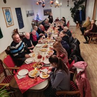 A november 7-i Szent Márton napi fényösvény programhoz az egyházmegyéből 21 karitász csoport csatlakozott, hogy közösen járják végig Szent Márton útját. A fényösvényen a résztvevők gyertyákkal, lámpásokkal haladtak végig, miközben rövid történeteket, énekeket és imákat hallgattak Szent Márton életéről és az irgalmasság fontosságáról. A kis lámpások fénye a remény mellett a hitet és az egymás iránti szeretetet jelképezte. A közösen bejárt út végén a csoportok libatepertővel, zsíroskenyérrel, és teával vendégelték meg a kicsiket és nagyokat. Az adventi időszak a várakozás, az elcsendesedés és a szeretet ideje. Ilyenkor különösen felértékelődnek azok a közösségi programok és kezdeményezések, amelyek segítenek az embereknek abban, hogy ne csak külsőségekben, hanem lélekben is készüljenek az ünnepre. A 17 karitász csoport által szervezett szeretetvendégség az adventi időszak egyik legmeghatóbb eseménye volt. A szeretetvendégség célja, hogy a rászorulók, az idősek, a magányosok és a nehéz helyzetben élő családok is átélhessék az ünnep melegségét és a közösség befogadó erejét. Az eseményen a közösen elköltött finom ételek mellett lehetőség nyílt beszélgetésre, közös éneklésre és imádságra. A karitász önkéntesei szeretettel fogadták a vendégeket, figyelmesen meghallgatták őket, és apró ajándékokkal is kedveskedtek nekik. Volt olyan csoport, ahol 14 kg felajánlott halból üstben főztek 100 adag halászlevet. Akik pedig nem tudtak személyesen résztvenni az ebéden, nekik házhoz szállították a finom falatokat. Ez a program jól példázta, hogy a szeretetvendégség nem csupán az ételről szólt, hanem a törődésről, az emberi kapcsolatok megerősítéséről és arról, hogy senki ne maradjon egyedül az ünnepek idején. Ezzel a programmal több mint 700 meghívottnak lett szebb a karácsonyi ünnepe. A téli szünetben a csoportok gondoltak az otthon lévő gyermekekre is, számukra karácsonyi tábort szerveztek. A táborban a gyerekek játékos formában ismerkedhettek meg az adventi hagyományokkal, készíthettek karácsonyi díszeket, betlehemes játékot tanulhattak, és közös programokon vehettek részt. A közös játék, az alkotás és az együtt töltött idő sok gyermeknek szerzett örömet a téli szünidőben. A Váci Egyházmegyei Karitász adventi programjai jól mutatták, hogy a karácsonyra való készülődés nemcsak a díszekről és az ajándékokról szól, hanem sokkal inkább a szívről, a szeretetről és a mások felé fordulásról. A Szent Márton napi fényösvény, a szeretetvendégség és a karácsonyi gyermektábor mind hozzájárultak ahhoz, hogy az emberek közelebb kerüljenek egymáshoz, és megéljék advent üzenetét. Hálásan köszönjük csoportjaink, önkénteseink áldozatos munkáját! |